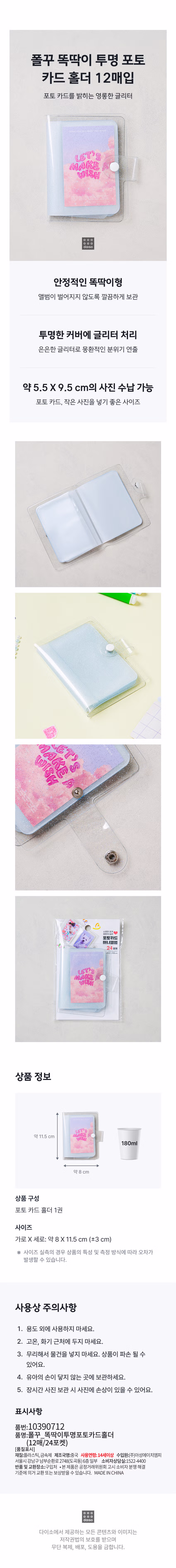 Photocard Tick-Tock Transparent Photo Card Holder 12 Sheets [DAISO]